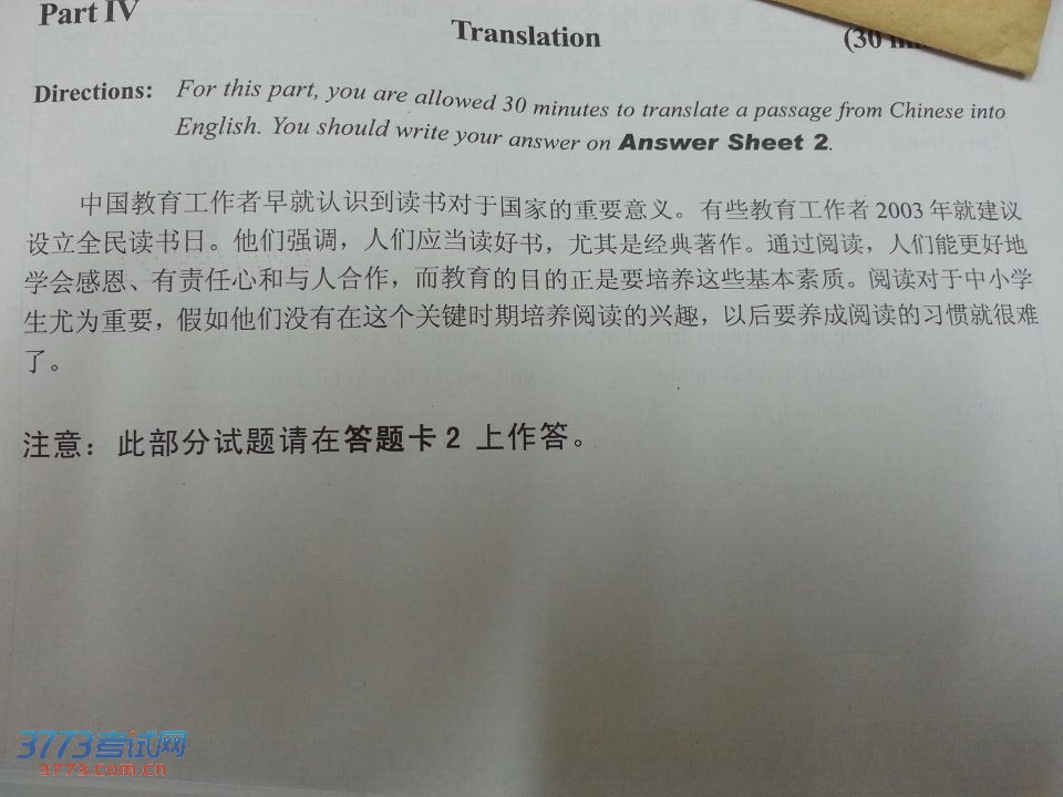 2015年6月四级真题答案翻译卷三