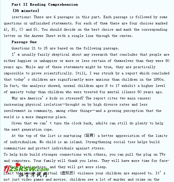 英语四级考试2011年仔细阅读练习(6)