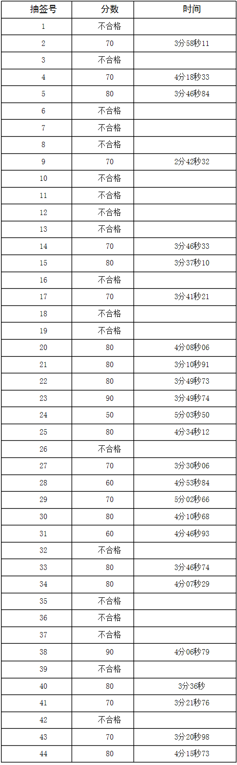 1、专业测试成绩(按抽签号排列)