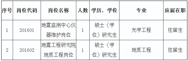 根据《事业单位公开招聘人员暂行规定》(人事部令第6号),经中国地震局批准,安徽省地震局直属事业单位2016年度面向社会公开招聘工作人员2名。现将有关事项公告如下: