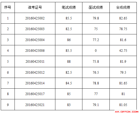 马鞍山含山县招标采购监督管理局2016招聘笔试、面试及合成成绩公示
