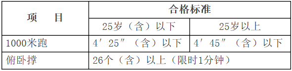 体能测试项目及合格标准