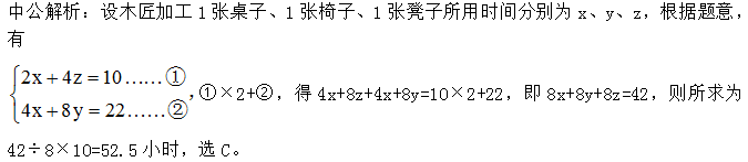 中公解析:老李家的人均水费为210×5÷6=175元,老张家的人均水费为(180×5+30×7)÷5=222元,则所求为222-175=47元,选C。