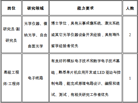 根据科研工作需要,中心诚聘国内外对光电仪器设备有兴趣的科研人员。