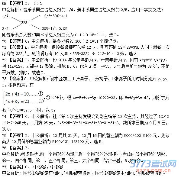66.【答案】A。中公解析:依题意知,原有非技术人员110÷(1+10)=10人,现有技术人员是非技术人员的10倍,多9倍,多153人,则现有非技术人员153÷9=17人,故今年新招非技术人员17-10=7人。