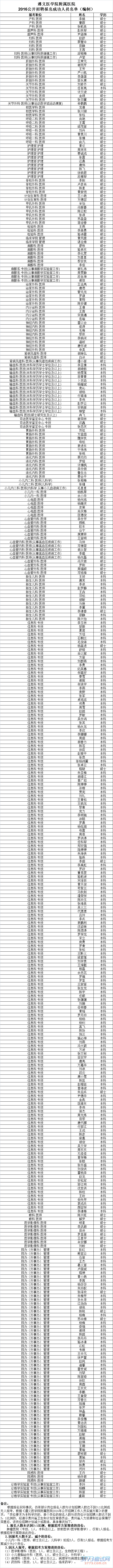 贵州遵义医学院附属医院2016公开招聘报名成功人员名单(非编制)