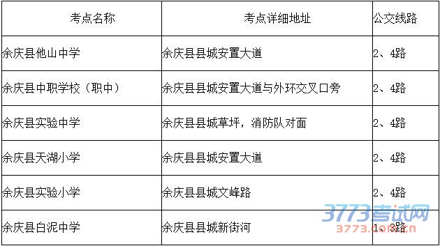 余庆县2016年事业单位招考的笔试将在余庆县城城区设置6个考点,各考点名称、详细地址及公交线路分别是: