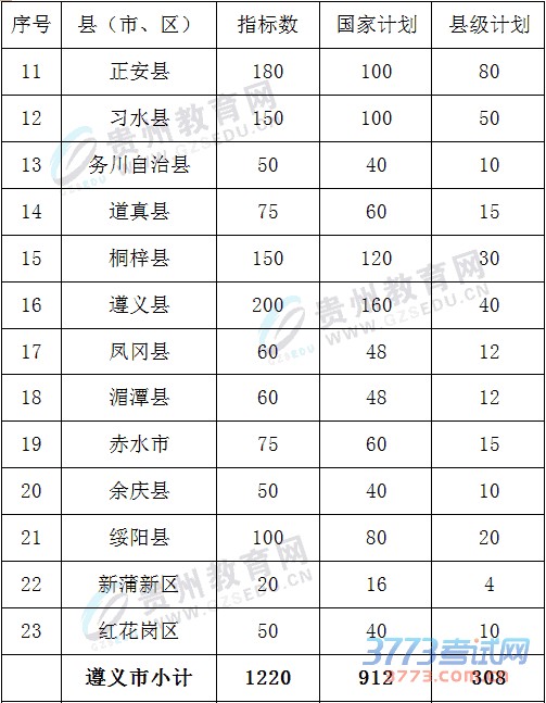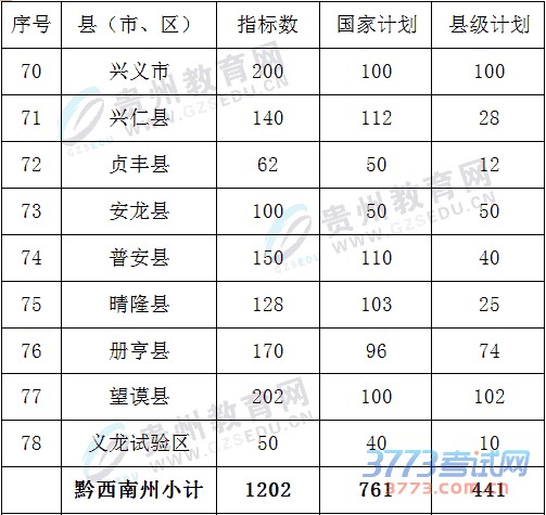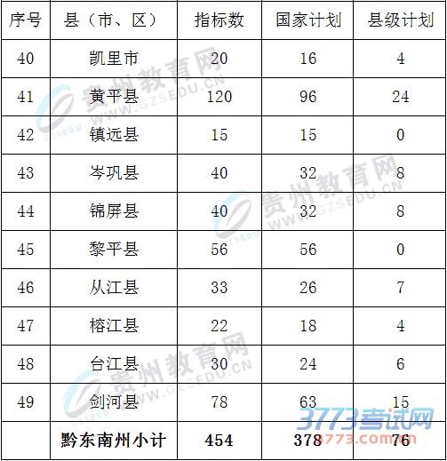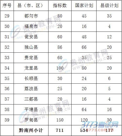 附表:贵州省2016年农村义务教育阶段学校教师特设岗位计划教师指标分配