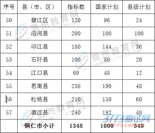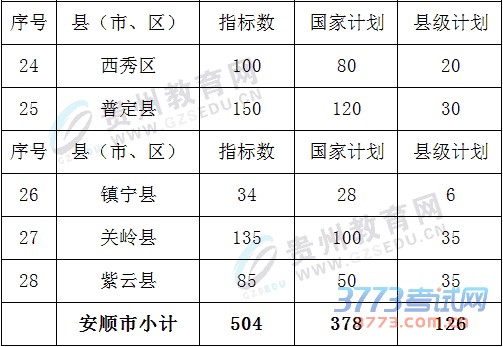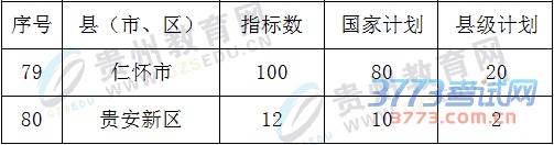 2016贵州特岗教师招聘岗位计划教师指标分配表