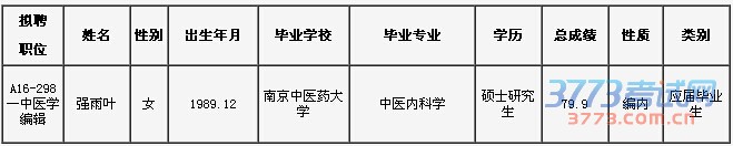 根据2016年3月3日在江苏省人力资源和社会保障厅网站发布的《江苏省卫生和计划生育委员会直属事业单位2016年公开招聘工作人员公告》要求,经笔试、面试、体检,确定强雨叶同志为我单位本次公开招聘拟聘用人员。现面向社会进行公示,公示期为7个工作日。公示期间,如对拟聘用人员有异议,请及时向江苏省卫生和计划生育委员会人事处(电话:025-83620621)反映。为便于对反映问题进行调查核实,请在反映问题时提供具体事实或线索,并请提供联系方式。