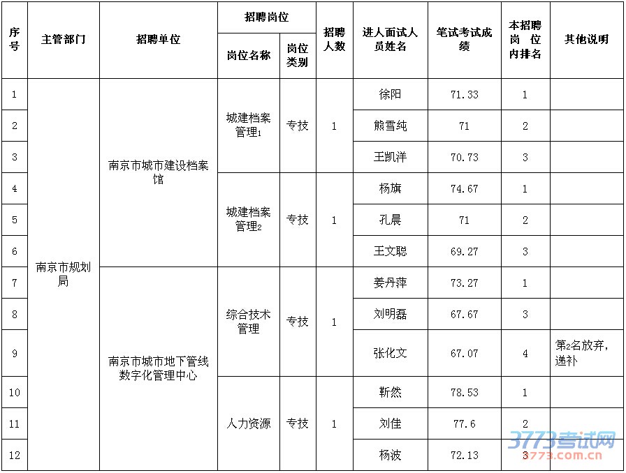江苏南京市浦口区事业单位2016上半年招聘面试名单