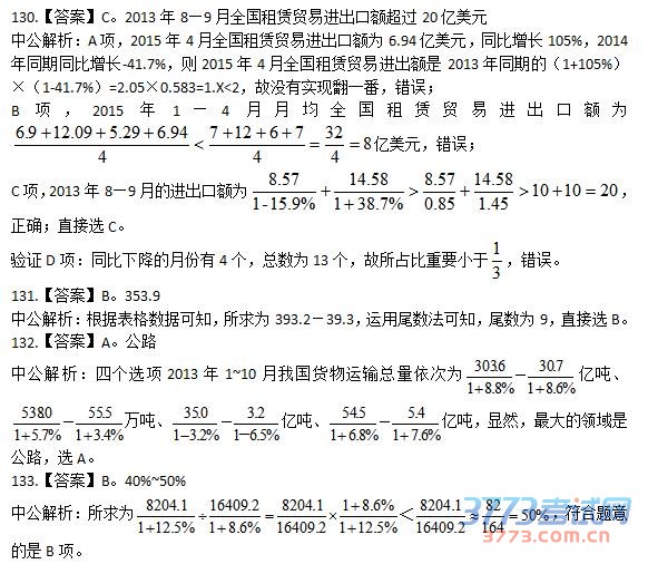 135.【答案】C。铁路货运量占总体比重低于其货物周转量占总体比重