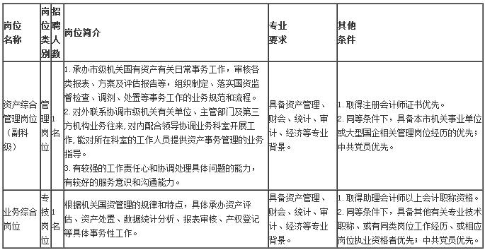 上海市市级机关国有资产事务中心是隶属于上海市机关事务管理局的全额拨款事业单位,主要承担市级机关国有资产管理的事务性工作。因业务发展需要,根据《上海市事业单位公开招聘人员暂行办法》〔沪人社专发(2009)45号〕,按照公开、平等、竞争、择优的原则,现面向社会公开招聘工作人员。