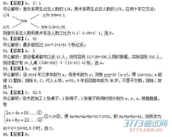 中公解析:老李家的人均水费为210×5÷6=175元,老张家的人均水费为(180×5+30×7)÷5=222元,则所求为222-175=47元,选C。