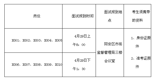 同安区市场监督管理局将于4月29日(周五)举行食品药品协管员招聘面试工作,具体安排如下: