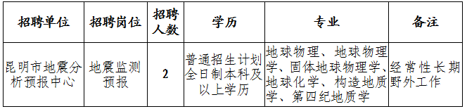 由昆明市防震减灾局负责。专业、学科设置参照照《2016年云南省公务员考试专业(学科)指导目录》。每个招聘岗位拟聘人数与通过资格审查报名人数不低于1:3的比例,达不到比例的取消该招聘岗位。