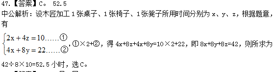 中公解析:老李家的人均水费为210×5÷6=175元,老张家的人均水费为(180×5+30×7)÷5=222元,则所求为222-175=47元,选C。