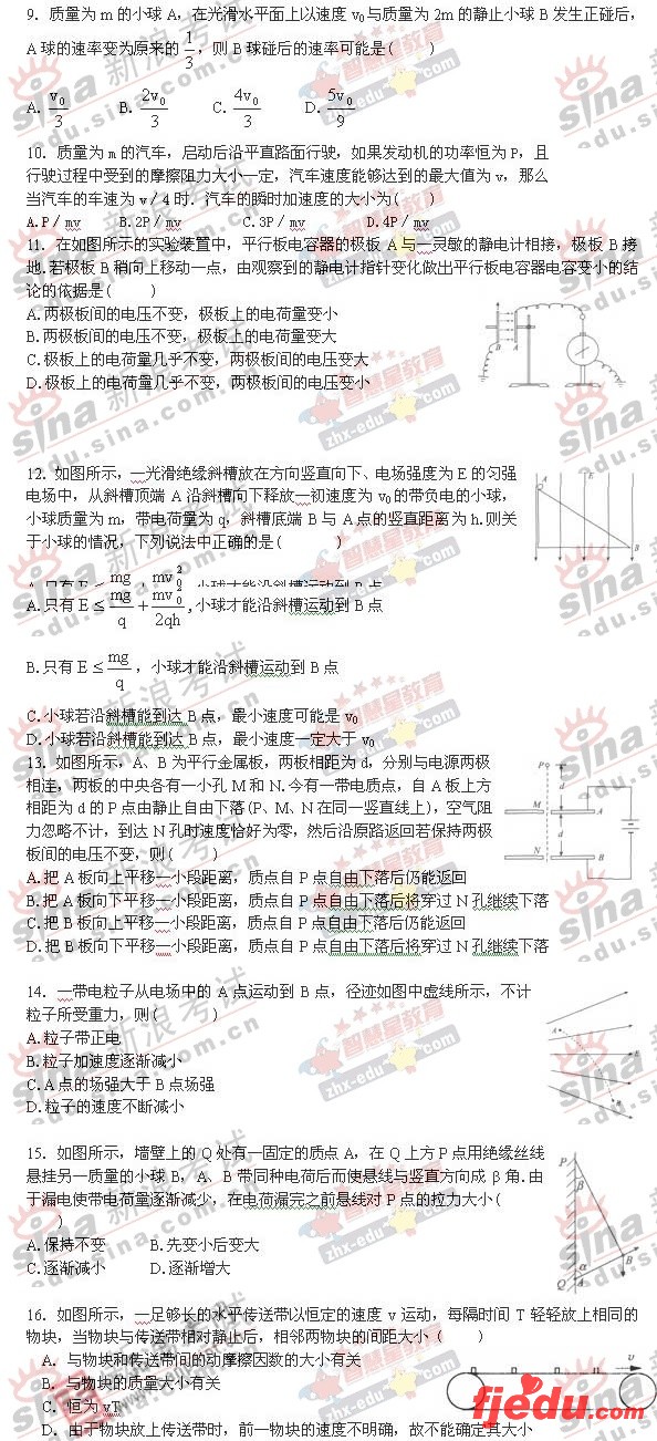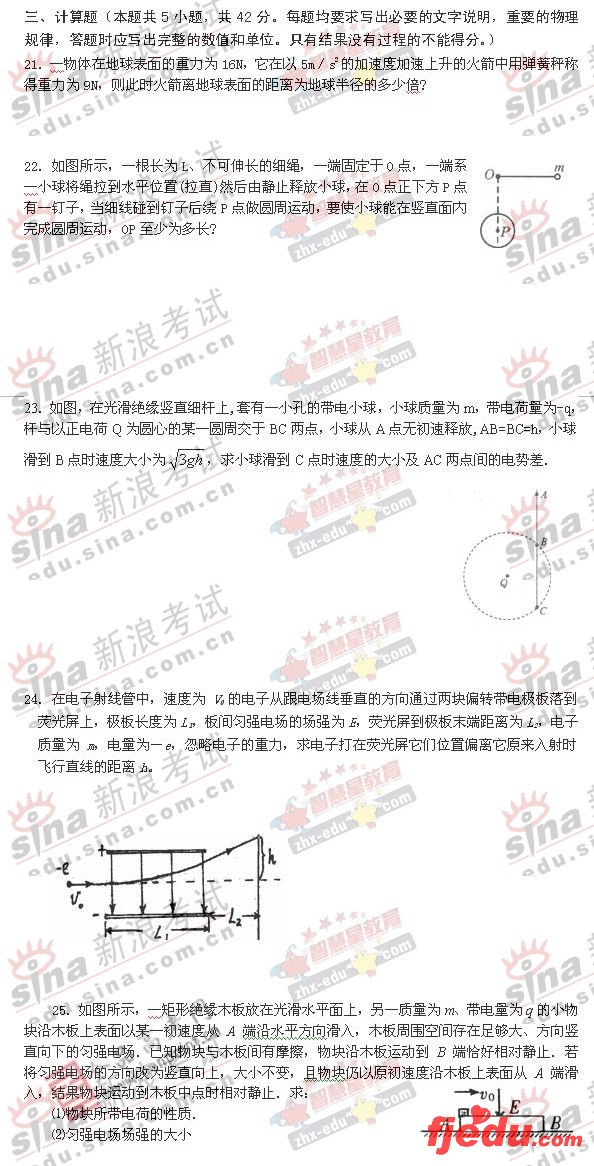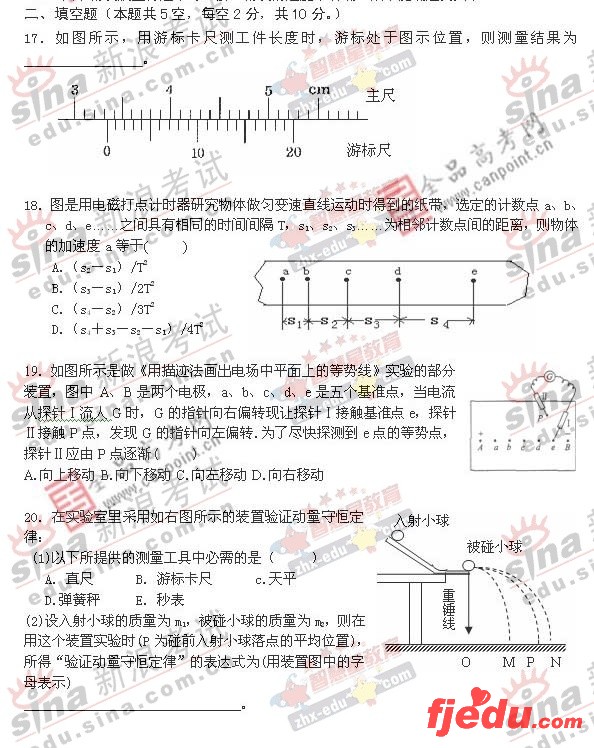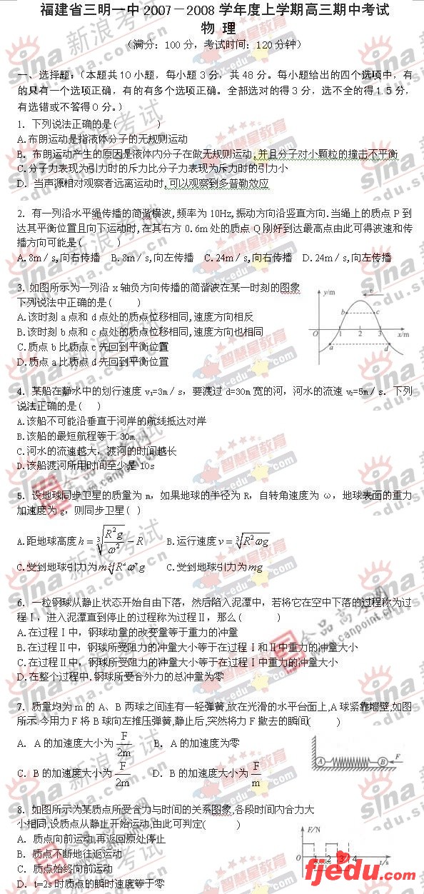 福建省三明一中2008届高三上学期期中考试物理模拟试卷