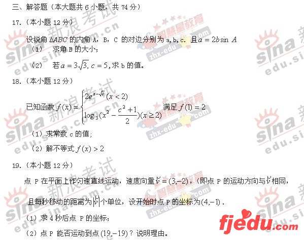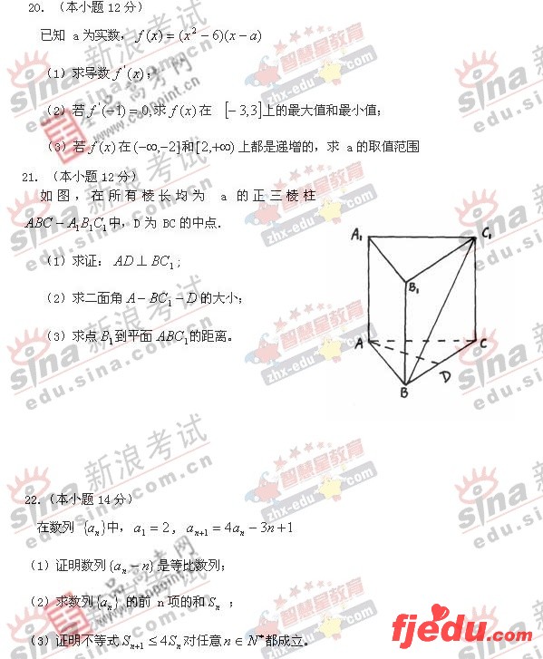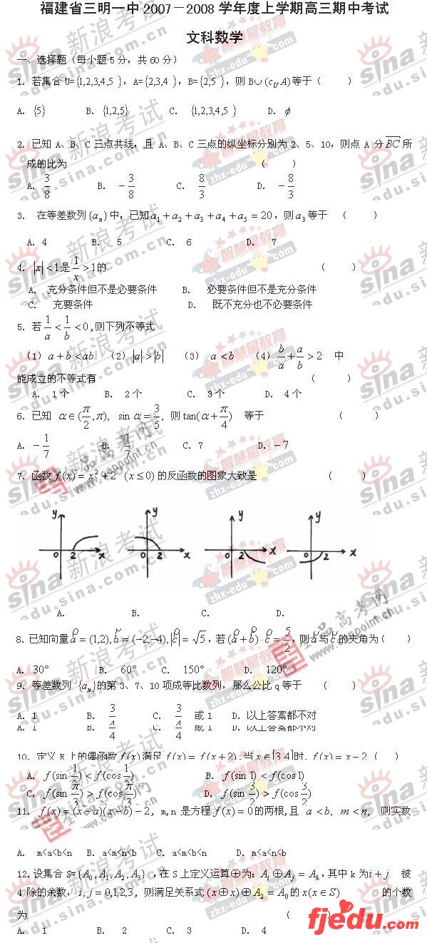福建省三明一中2008届高三上学期期中考试数学(文)模拟试卷