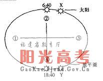 右图为我国某地太阳位置示意图,图示时间为春分日该地日出、日落的时间(当地时间),回