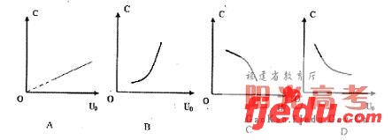 20.氧化锡传感器主要用于汽车尾气中一氧化碳浓度的检测。它的电阻随一氧化碳浓度的变化而变化,在右图所示的电路中,不同的一氧化碳浓度对应着传感器的不同电阻,这样,显示仪表的指针就与一氧化碳浓度有了对应关系,观察仪表指针就能判断一氧化碳浓度是否超标。有一种氧化锡传感器,其技术资料中给出的是电导(即电阻的倒数)———浓度曲线如图所示,请判断,电压表示数U0与一氧化碳浓度C之间的对应关系正确的是