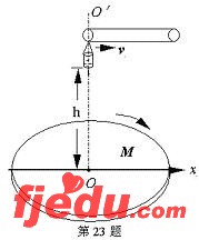 M是水平放置的圆盘,绕过其圆心的竖直轴OO′匀速转动,以经过O水平向右的方向作为x轴的正方向。在圆心O正上方距盘面高为h处有一个正在间断滴水的容器,在t=0时刻开始随长传送带沿与x轴平行的方向做匀速直线运动,速度大小为