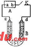 27.(15分)如图,A为直流电源,B为电解槽,c、d为石墨电极,B中存放有100 mL NaCl和CuCl2的混合溶液,其中Cu2+的物质的量