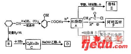 苯酚是一种重要的化工原料,以下是利用苯酚为原料,生产阿司匹林、香料和高分子化合物的合成线路图。