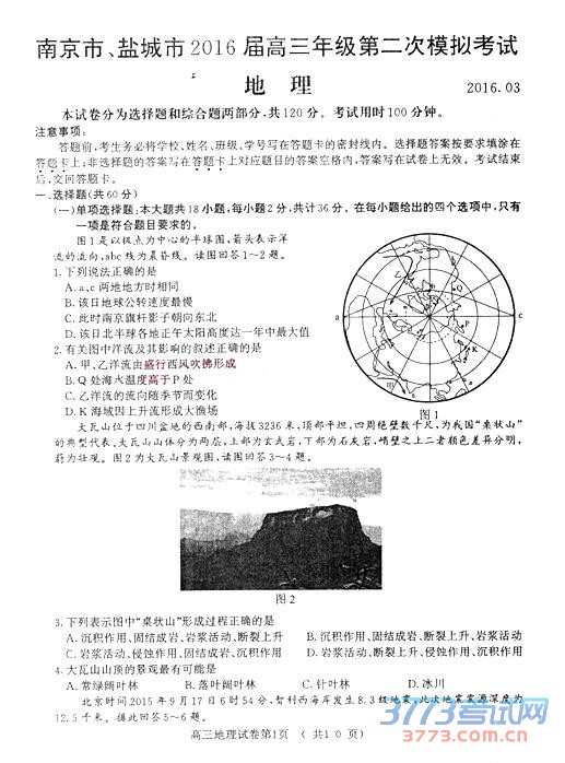 2016届南京、盐城高三二模于3月23-24日考试,以下是3773考试网高考频道小编整理的2016届南京、盐城高三二模试题及答案,供同学们参考学习。