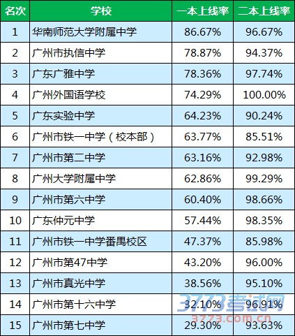 文科一本上线率排名中,华附牢牢占据第一名,一本上线率超过第二名执信近10%。广雅第三,广州外国语学校第四。