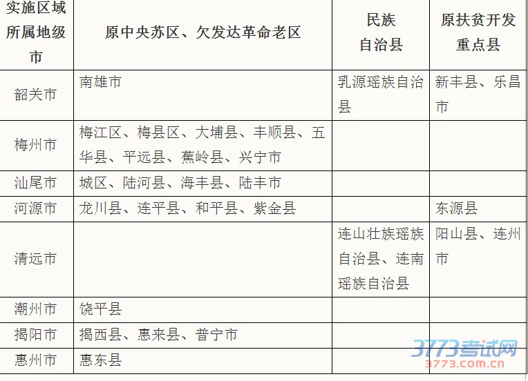 广东省2016年“高校专项计划、地方专项计划”实施区域