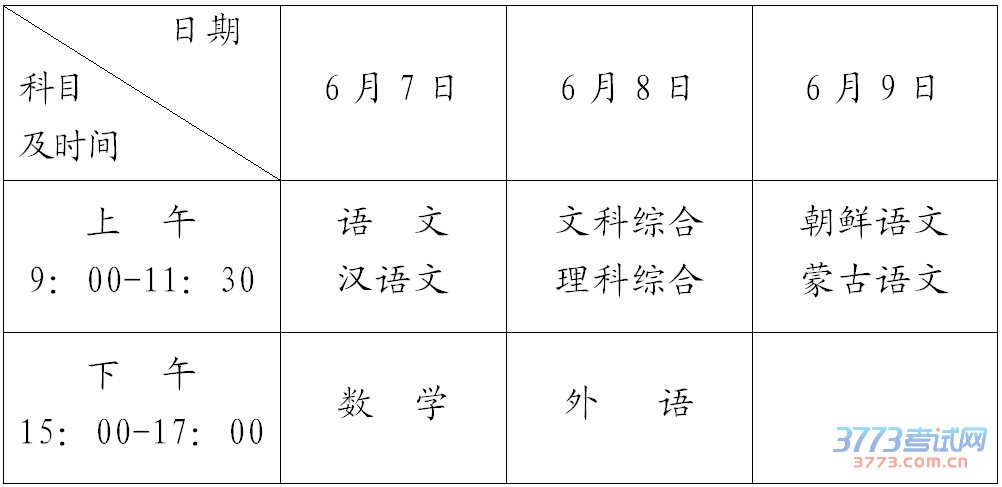 2016伊春高考时间科目安排