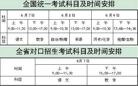 海南:今年高考科目考试时间排定