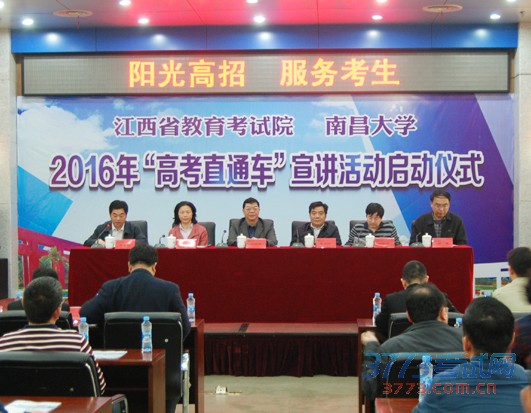 省教育考试院各处室负责同志、有关高校相关负责同志以及新闻媒体共100余人参加启动仪式。    江西省2016年“高考直通车”宣讲活动将开进全省各设区市18所中学,分别是永新任弼时中学、井冈山中学、上饶中学、广丰中学、临川二中、南丰一中、新建二中、铁路一中、余江一中、景德镇一中、星子中学、都昌二中、丰城中学、丰城二中、芦溪中学、分宜中学、赣州中学、上犹中学。届时,18位高招政策专家、高考阅卷组负责人和中学名师将现场为广大考生、家长、老师答疑解惑。