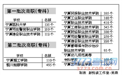 宁夏教育考试院指出:本计划用于参加高职院校分类考试的考生填报志愿。分第一批次高职(专科)和第二批次高职(专科)。第一批次高职(专科)只有参加过职业技能测试的考生才能填报,第二批次高职(专科)只要参加高职院校分类考试文化课考试的考生均可填报。