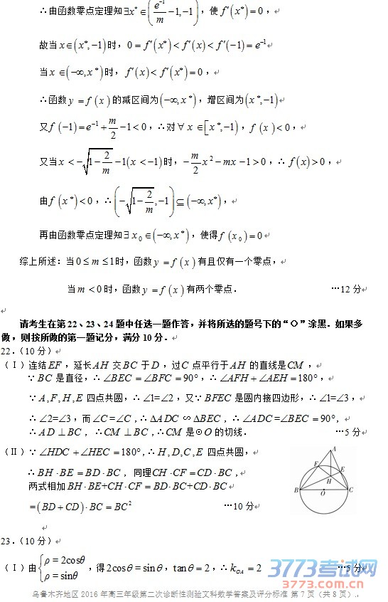 乌鲁木齐地区2016年高三年级第二次诊断性测验