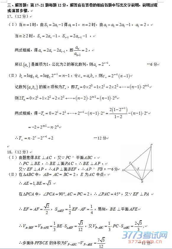 三、解答题:第17~21题每题12分,解答应在答卷的相应各题中写出文字说明,说明过程或演算步骤.