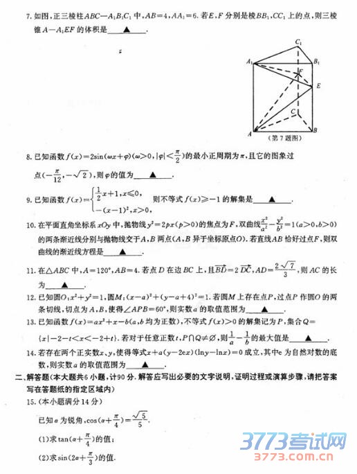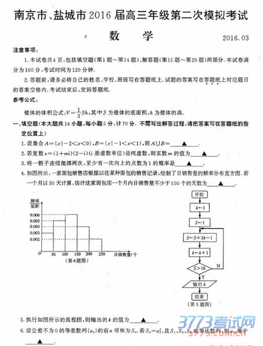 2016届南京、盐城高三二模于3月23-24日考试,以下是3773考试网高考频道小编整理的2016届南京、盐城高三二模试题及答案,供同学们参考学习。
