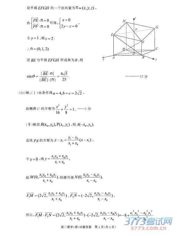 (19)解:(Ⅰ)连接,由可得为平行四边形,所以,而