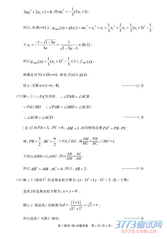 (24)解:(Ⅰ) ,从而解得. …………5分