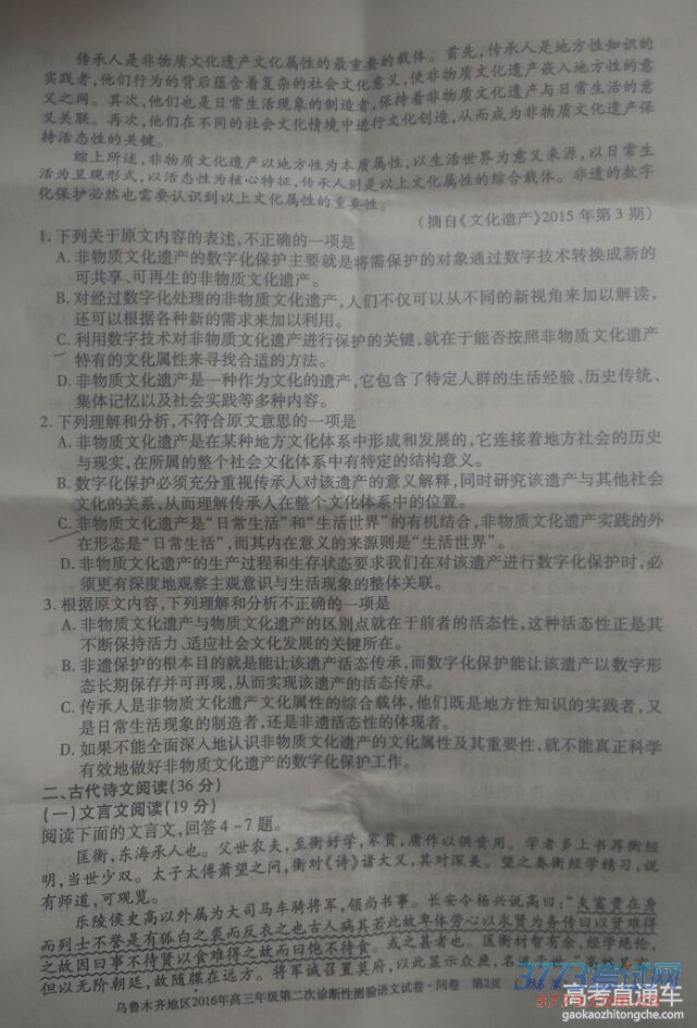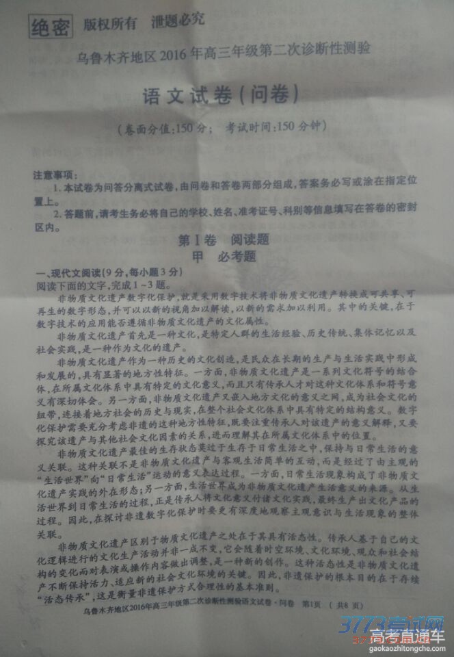 2016甘肃高三一诊语文答案 2016甘肃高考