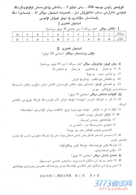 2016甘肃高三一诊语文答案 2016甘肃高考