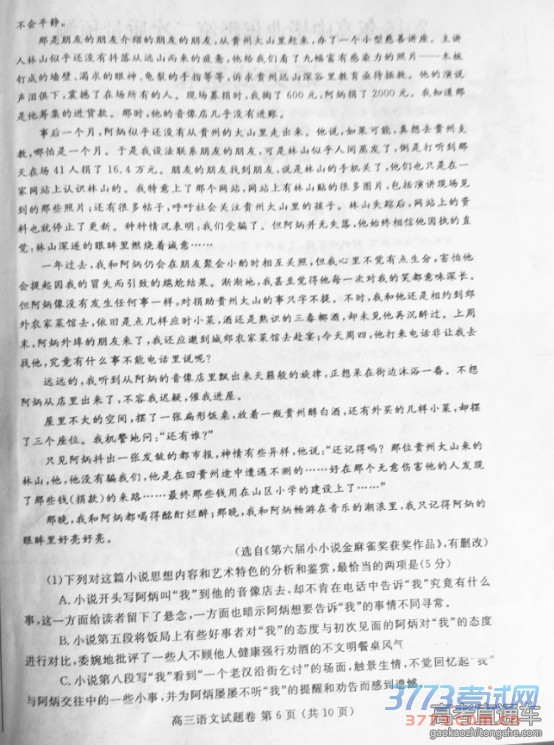 3773考试网 - 高考 - 高考模拟题 - 高考语文 - 正文