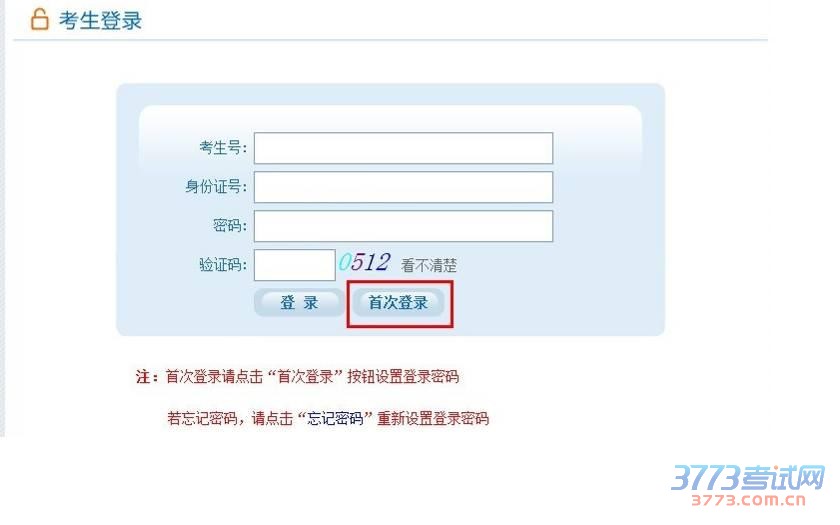 1. 使用IE浏览器登录gkbm.ahzsks.cn。如果是第一次登录系统,请点击“首次登录”按钮,跳转至设置登录密码页面。