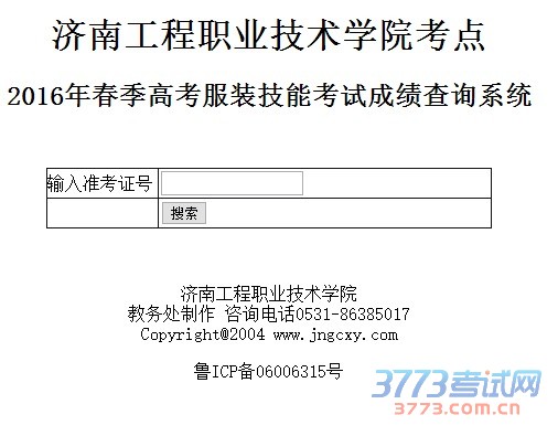 济南工程职业技术学院考点2016年春季高考服装技能考试成绩查询系统