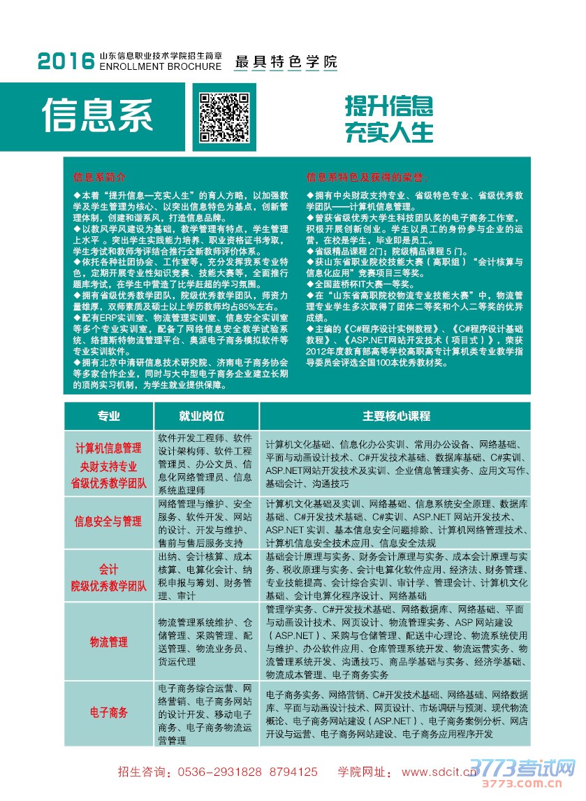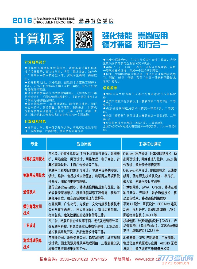 2016年山东信息职业技术学院单独招生政