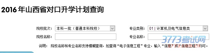 说明: 院校名称和专业名称支持模糊查询,如查询“电子信息工程”专业,输入“信息”或“信息工程”均可。