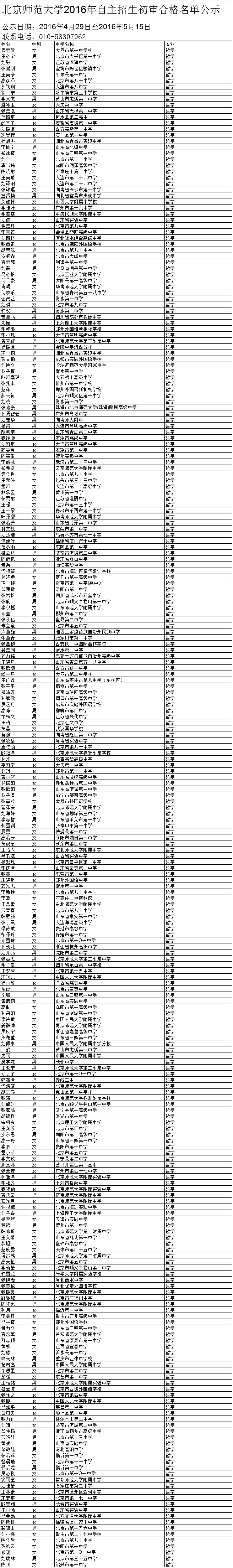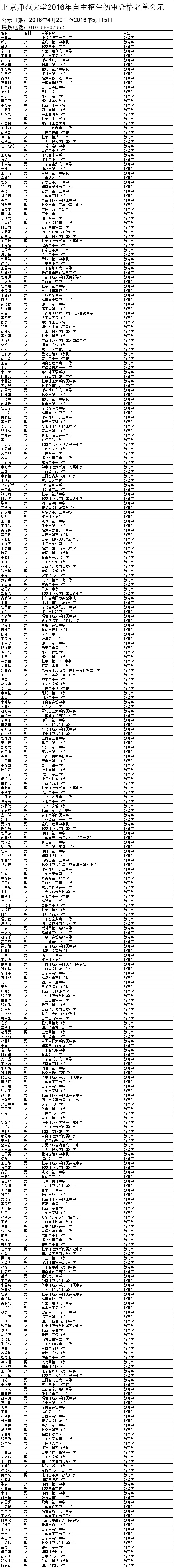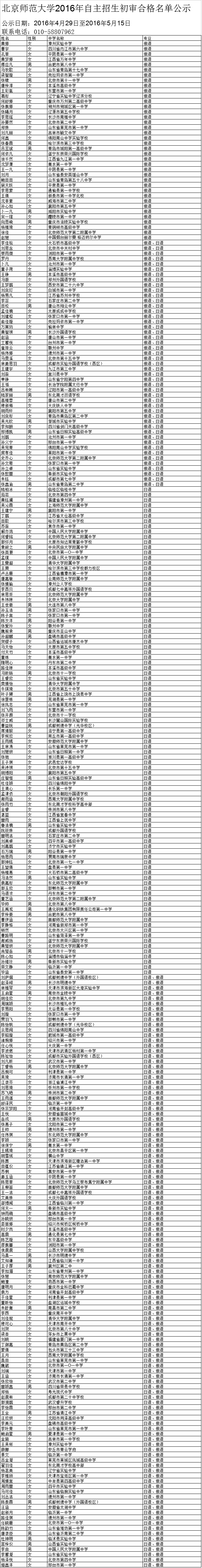 北京师范大学2016年自主招生初审结果已公布,请考生登录网上报名系统查看结果。