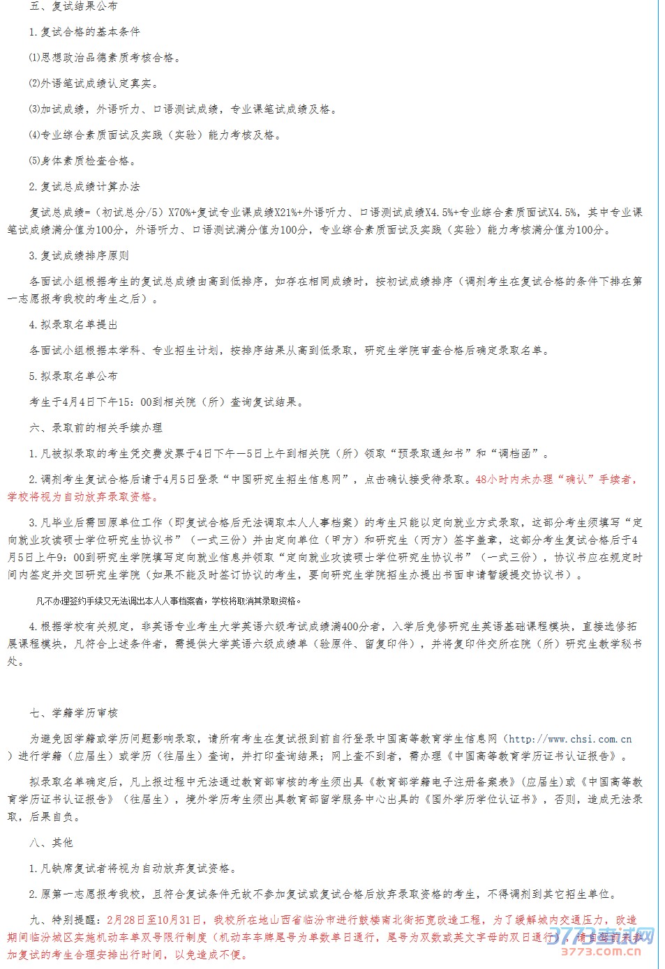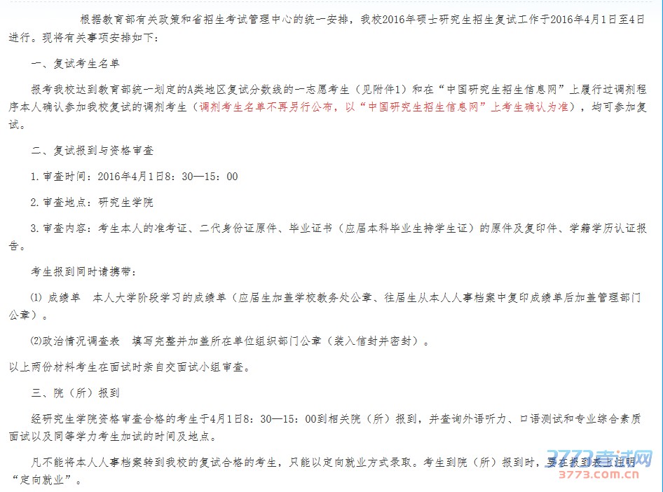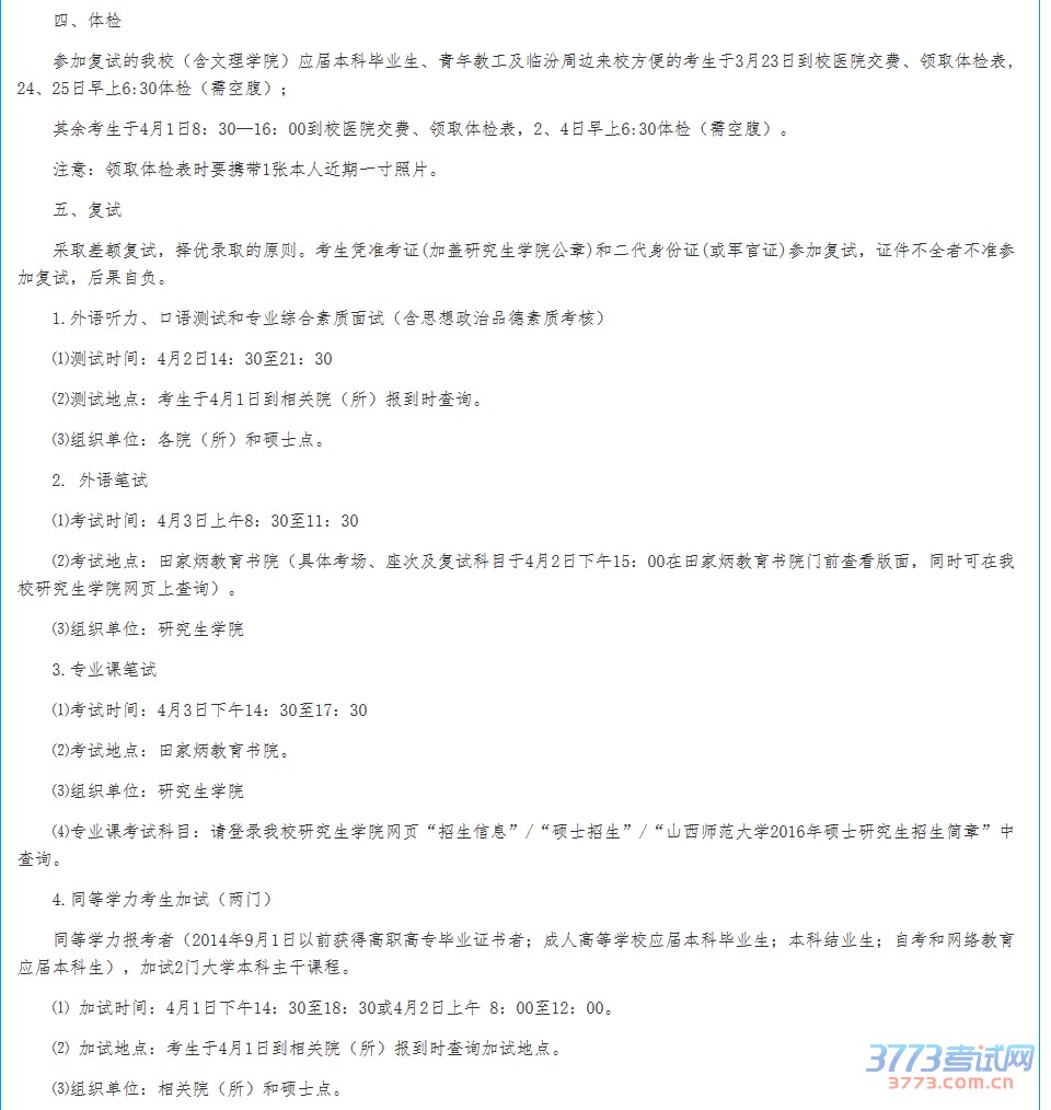 山西师范大学2016年考研复试通知