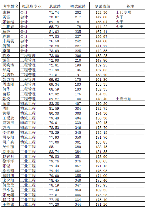 2016四川大学商学院专硕(不含MBA)招生拟录取名单